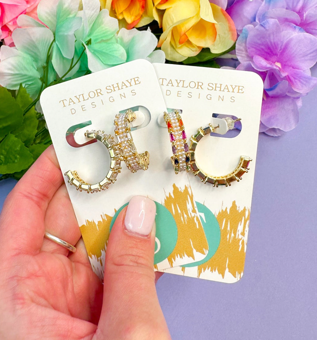 These stylish pearl hoops with the prettiest clear gemstones - perfect jazz up your look no matter what the occasion!