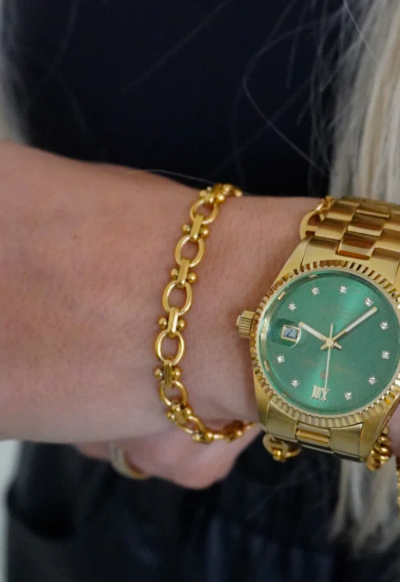This unique gold bracelet chain is not only stylish, but also WATER RESISTANT, perfect for beach days. And with a LIFETIME WARRANTY, it's a smart investment. Adjustable between 7-9 inches for the perfect fit.