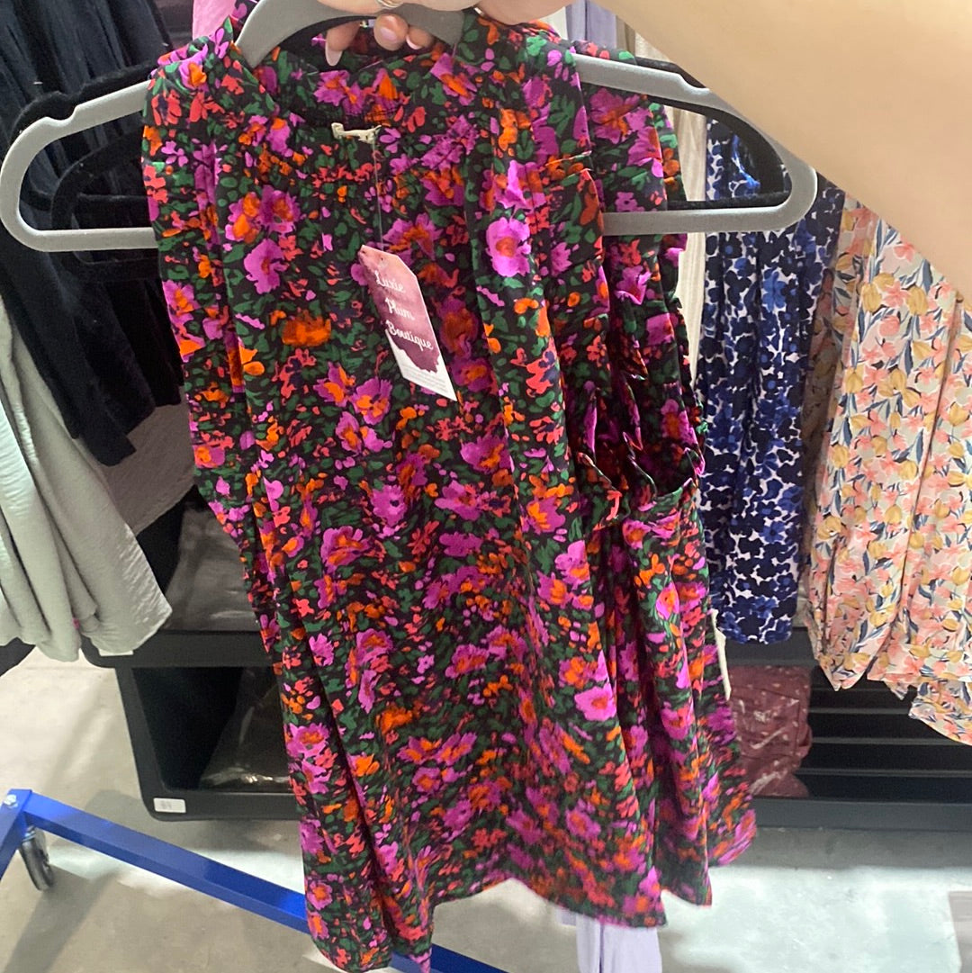 Love this floral printed top! It features a high neckline with micro-ruffle details and a loose fitted body! Pair this top with denim and wedges for date night or dress it up for work with slacks and a jacket!