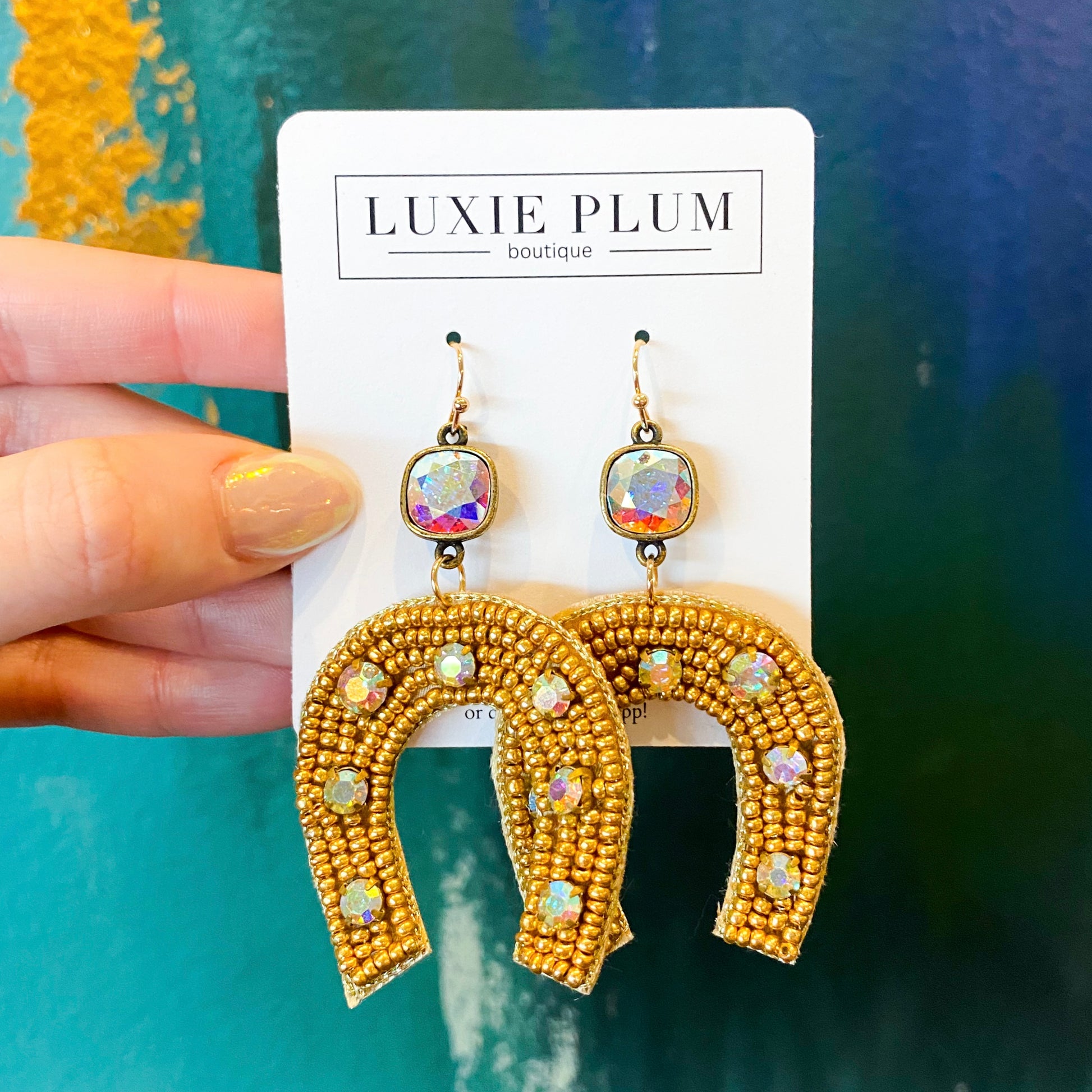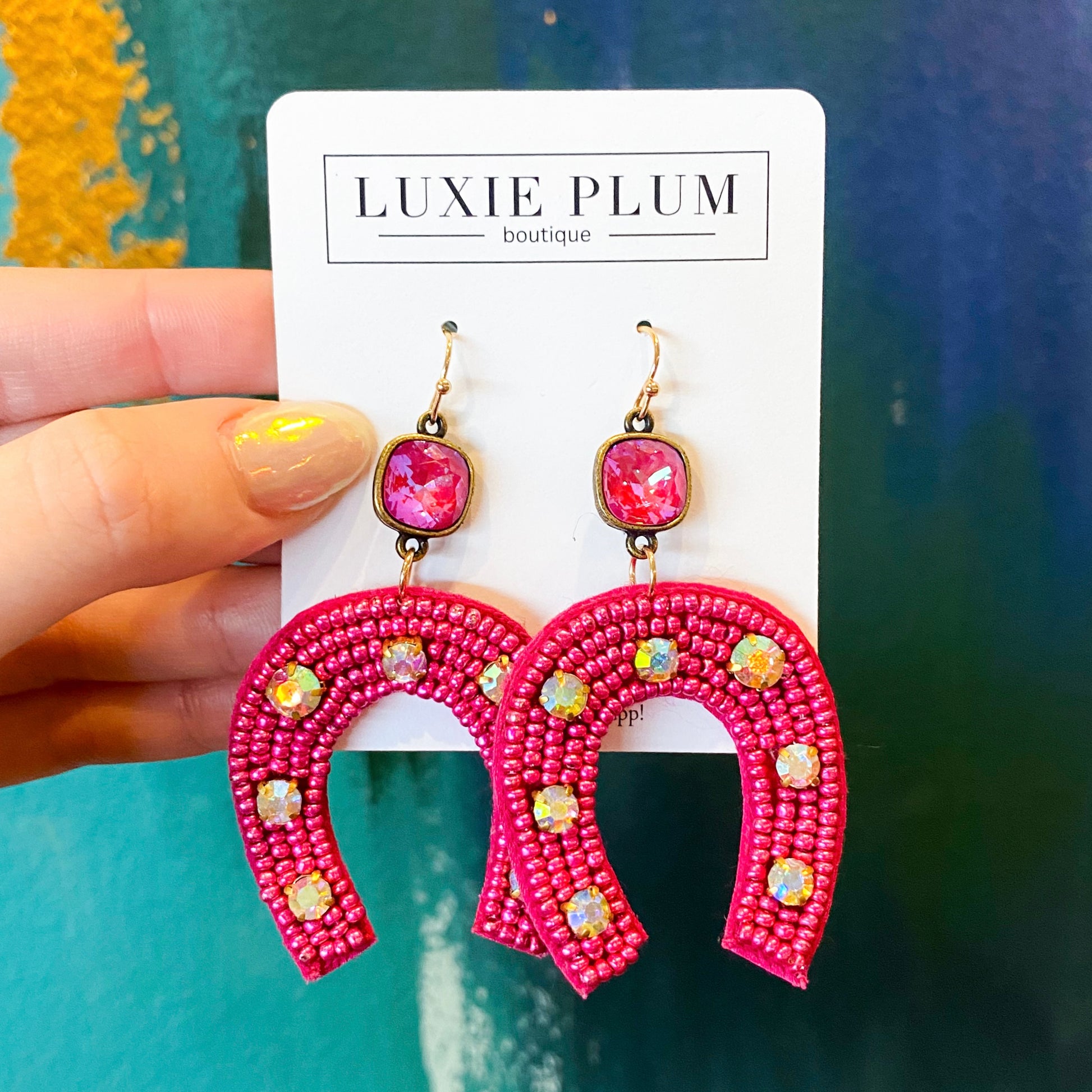 These beaded horseshoes are SO cute! Such a fun way to dress up your concert/rodeo outfits! We have two colors: Hot Pink and Gold!