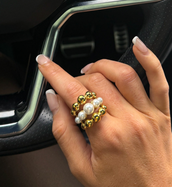 This Emma Ring features a delightful combination of gold bead and pearl bead, making it a unique and playful accessory. Plus, with its water-resistant design and lifetime warranty, this chunky ring is both practical and stylish. Available in size 7.