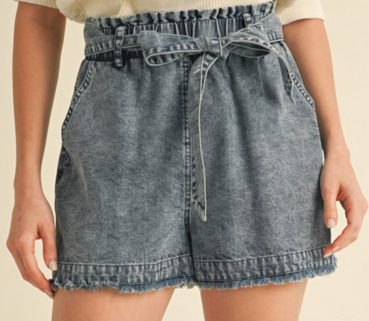 These denim shorts are SO cute for Spring/Summertime! They feature a belt, side pockets and a frayed hemline. Perfect to pair with a fitted top/bodysuit!