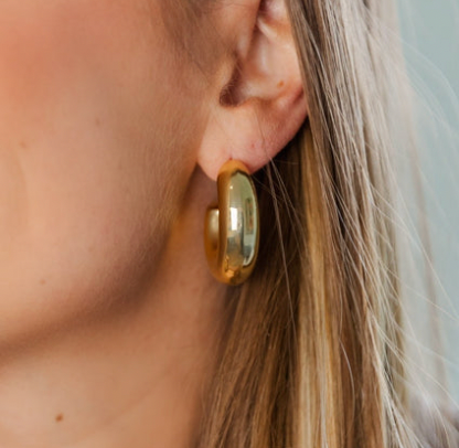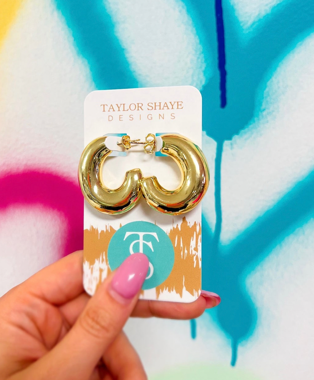 These Gold Kai Hoops add a playful twist to the classic gold hoop.