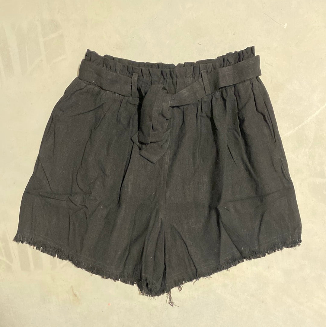 How precious are these!! These are the perfect every day black shorts! They feature a raw edge hemline on the bottom, a cinched waistline and a fully adjustable tie. You can style these with a basic tee/bodysuit or a printed, patterned top and sandals!