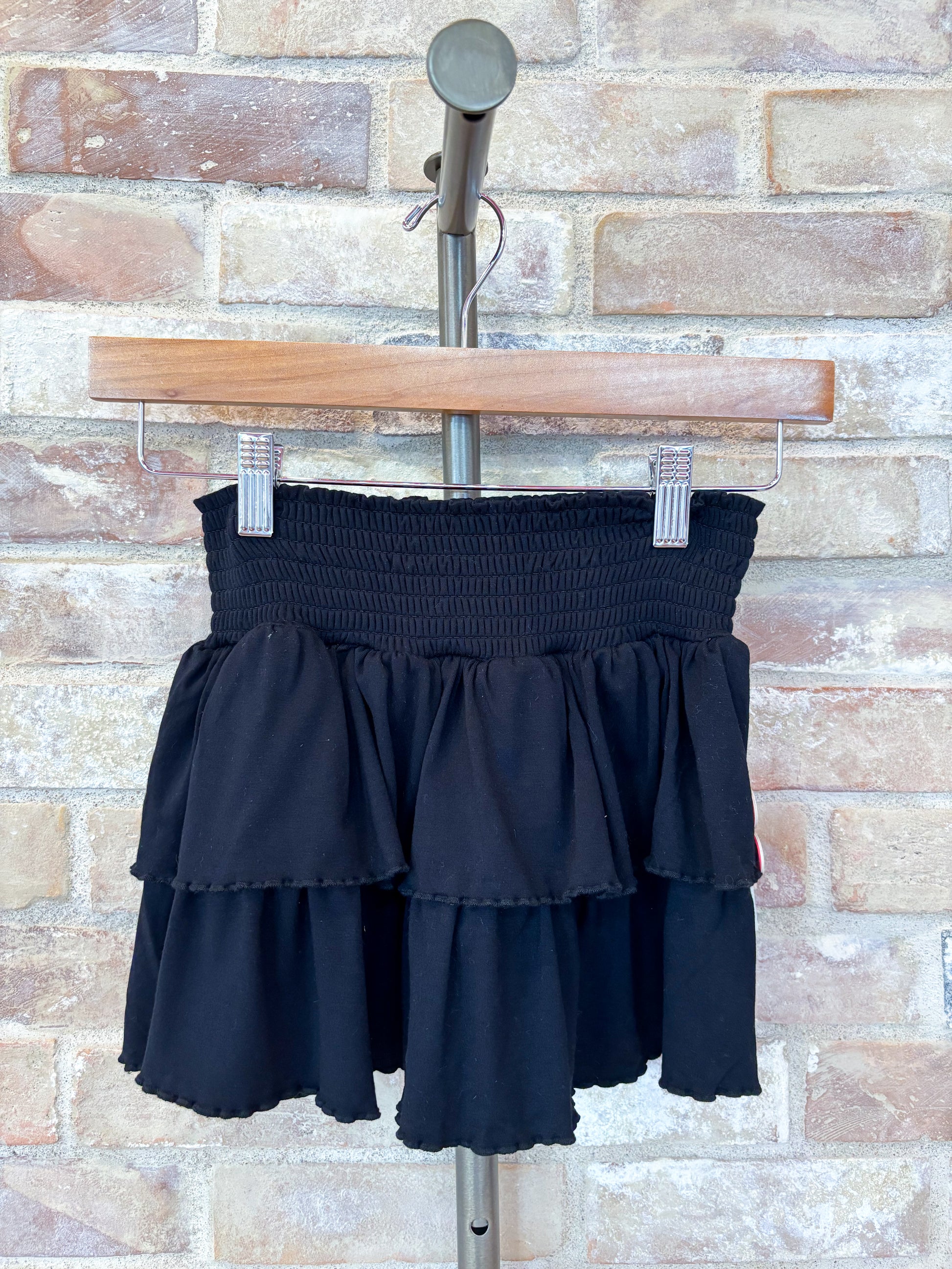 This super soft black skort is the perfect playful addition to your little one’s wardrobe. With its flirty ruffles and comfy fit, the Little Luxies Kerrigan Skort lets your girls move freely while looking adorable. It’s a fun, versatile piece that will quickly become a favorite for all their adventures!