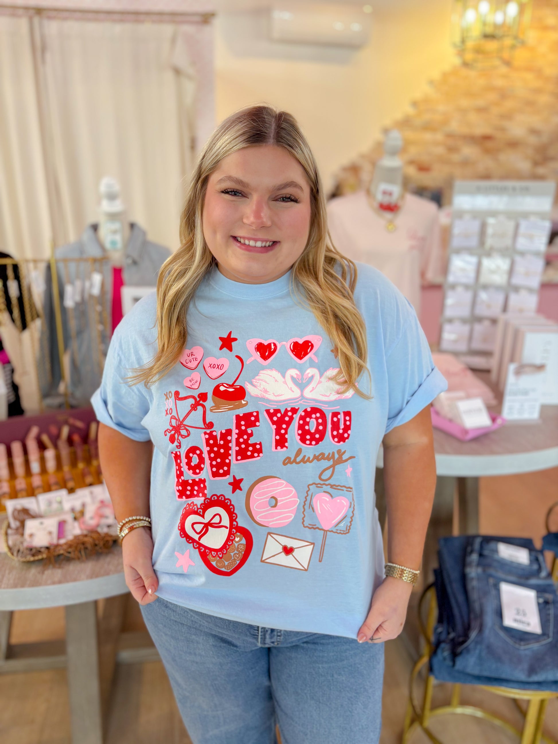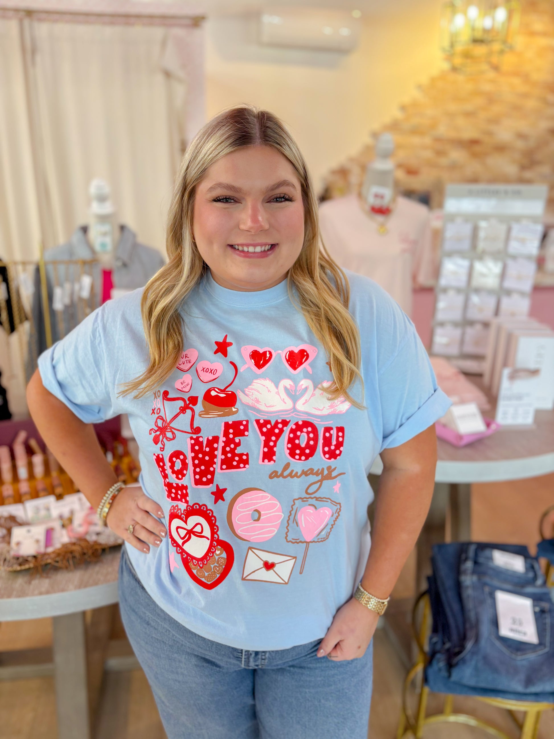 Spread good vibes with the Love You Always Tee—a playful essential that brightens your day with every wear. Featuring a charming screenprinted design on a soft 100% cotton Comfort Color base, this tee delivers both comfort and personality. The relaxed fit makes it perfect for casual outings, cozy hangouts, or whenever you need a mood boost. True to size with a comfortable, laid-back silhouette that works for everyone!