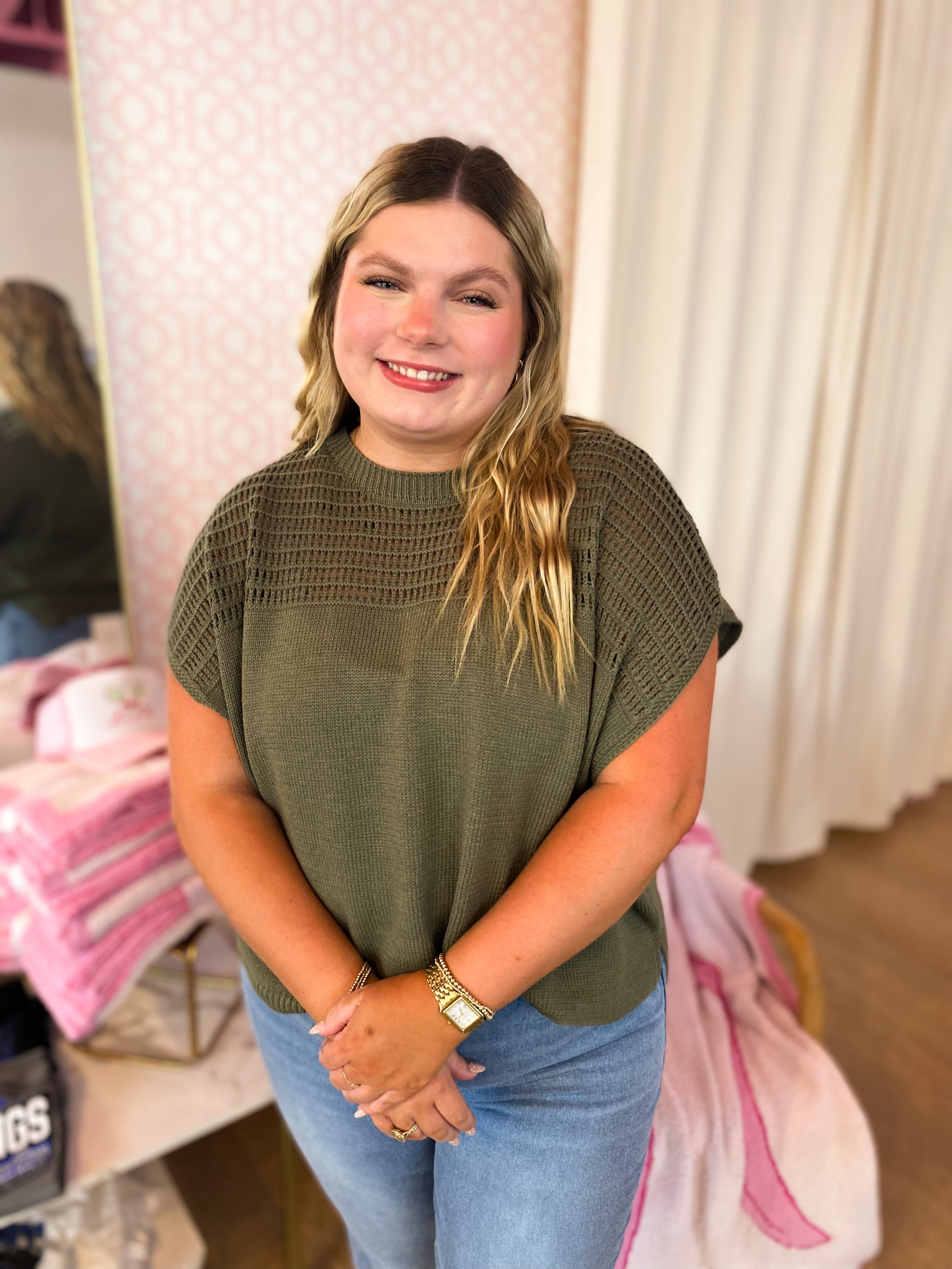 Cozy up in the olive dolman sleeve crew neck sweater, Made To Glow. With a relaxed fit and soft feel, it’s perfect for warmth and playful style. Add an easy, earthy pop to any outfit!