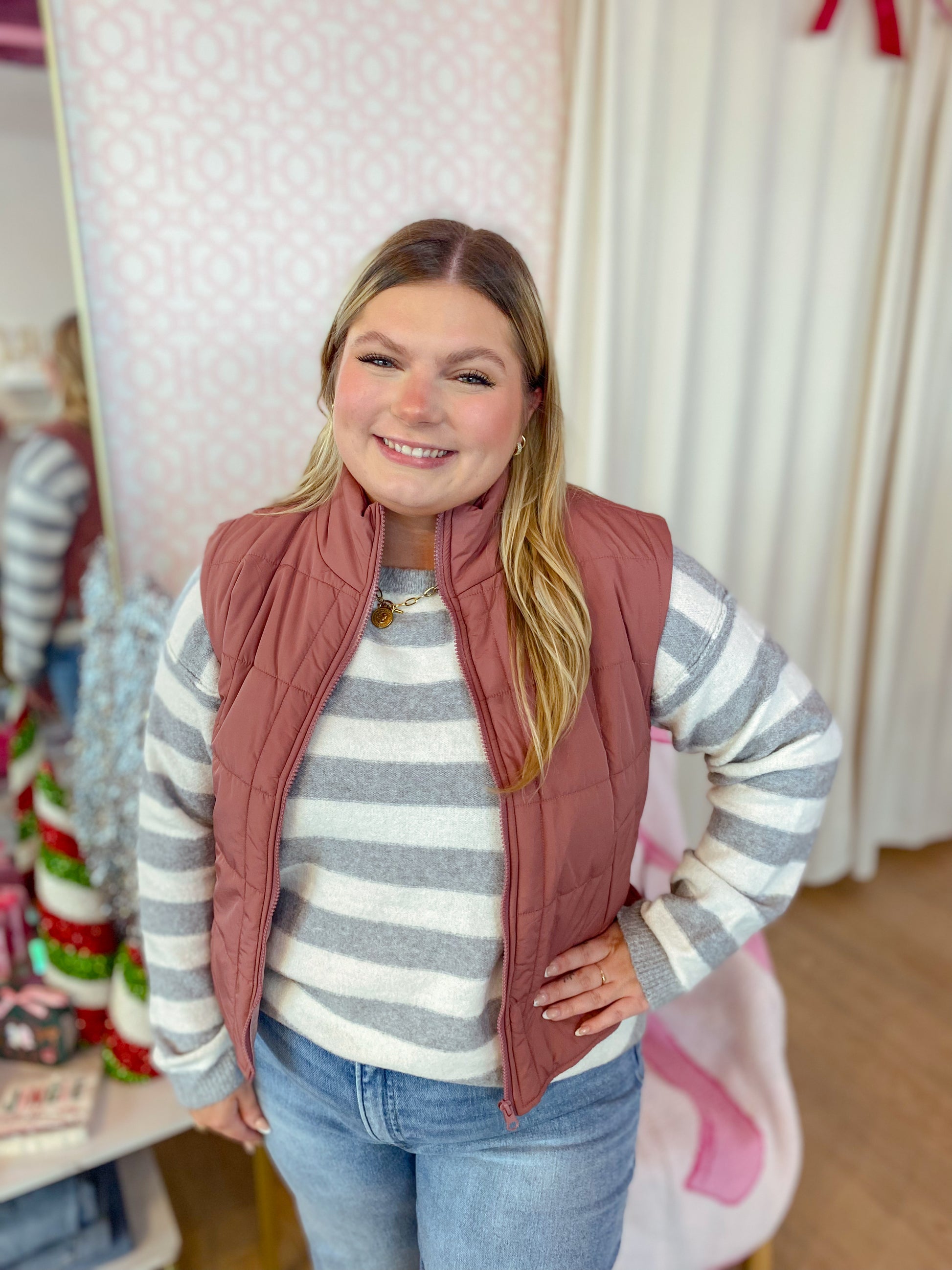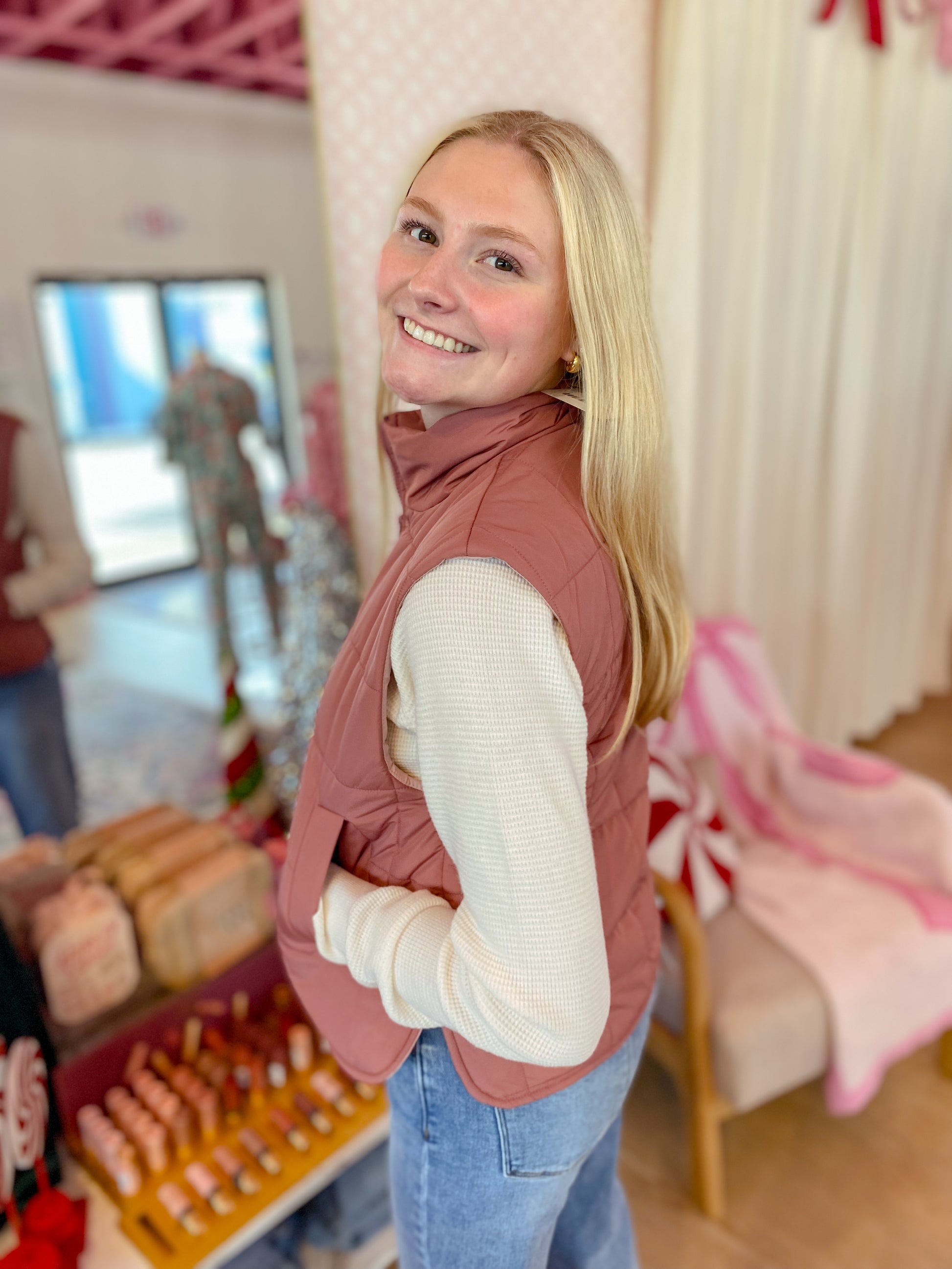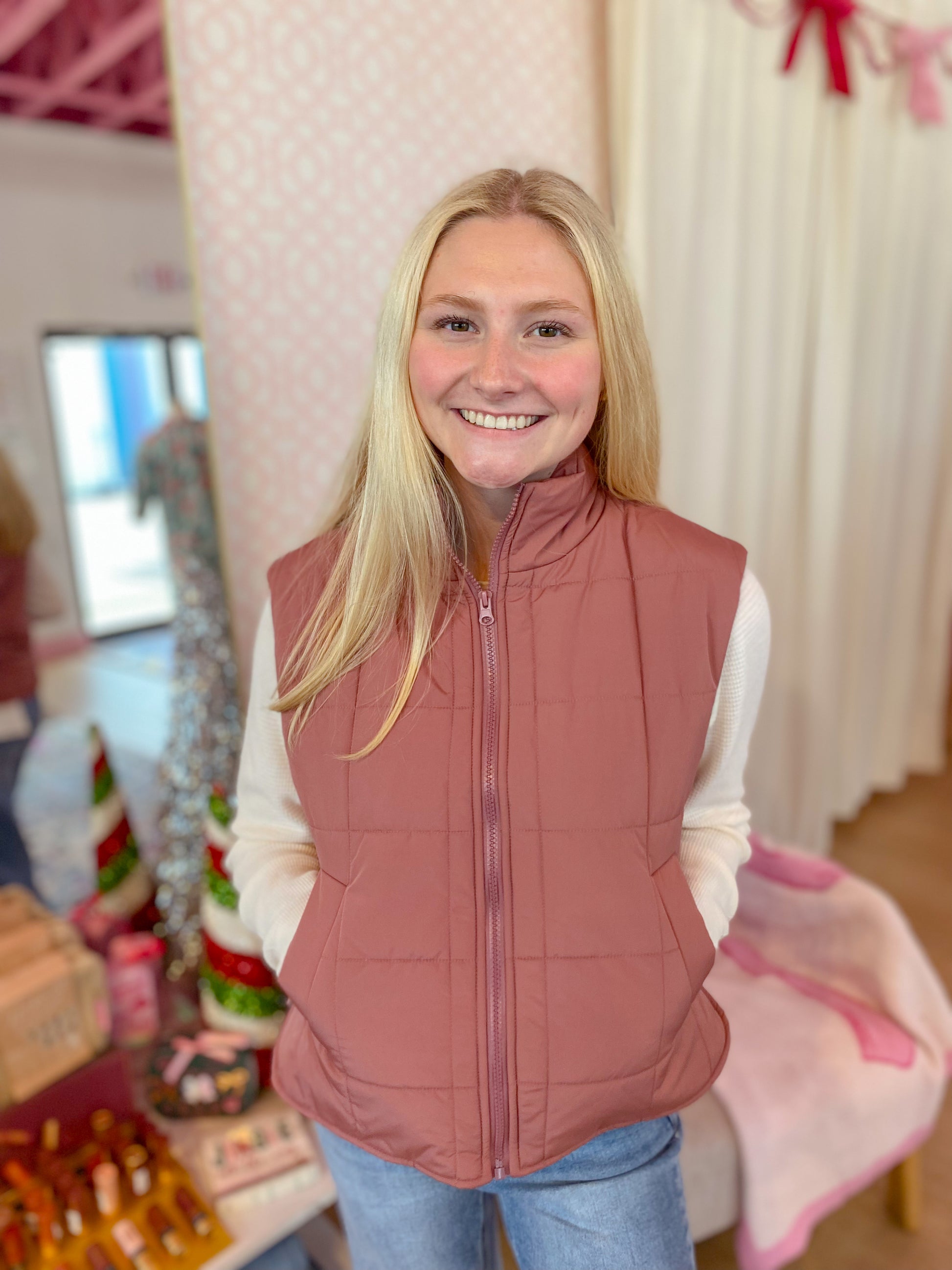 Stay cozy and stylish with the Nothing To Explain Vest! This mauve puffer features a fun mix of solid and leopard patterns, a high neck for extra warmth, and a handy zip-up front. Side pockets keep your hands comfy, while side slits add a playful twist to your look. Perfect for chilly days when you want effortless cool without saying a word!