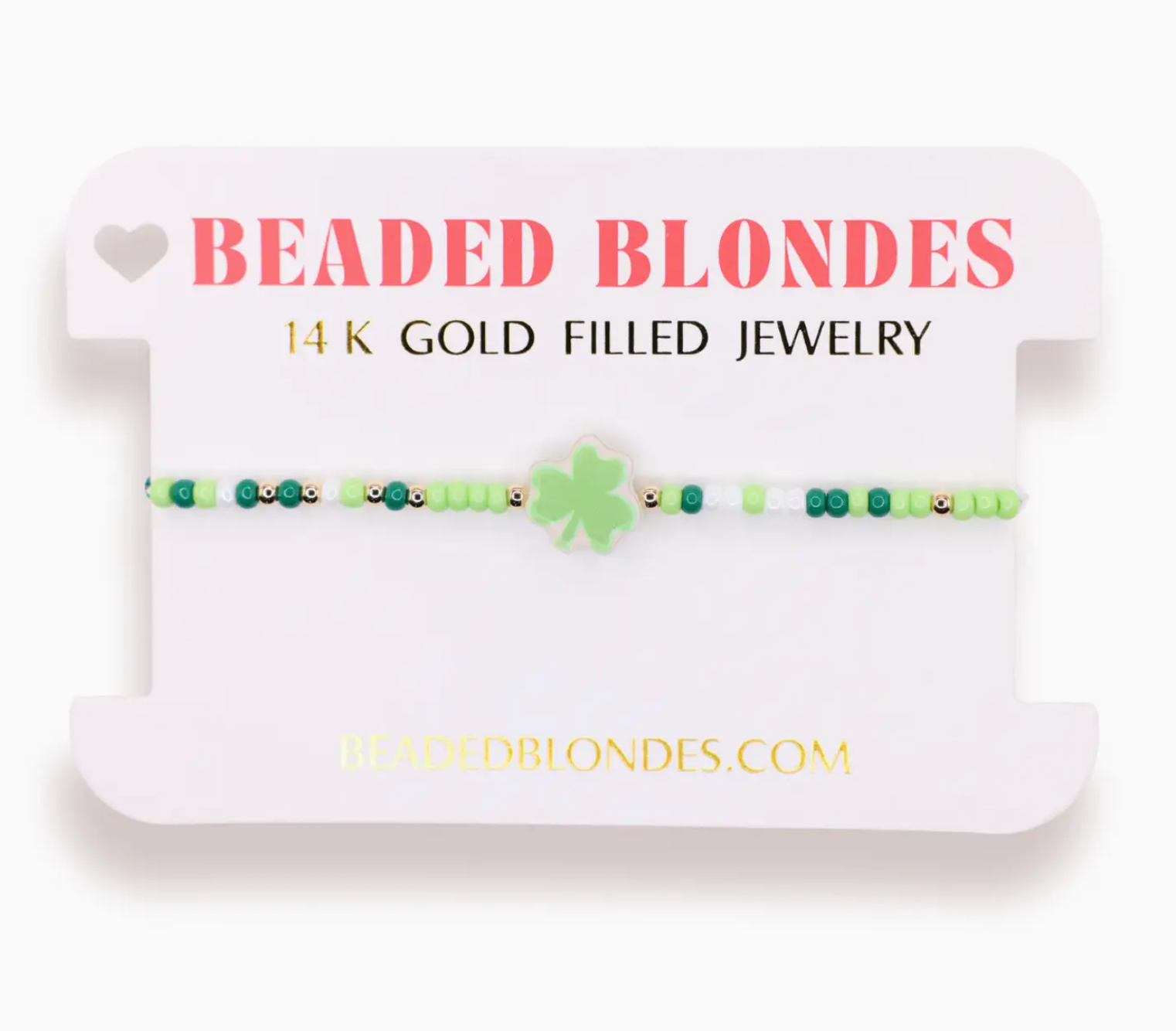Celebrate St. Patrick’s Day in style with this handcrafted bracelet featuring Czech glass beads in a stunning mix of festive colors. Accented with 2.5mm gold-filled beads for a touch of timeless shine, each bracelet is finished with a custom acrylic St. Patrick’s Day bead — a playful nod to luck and Irish cheer.