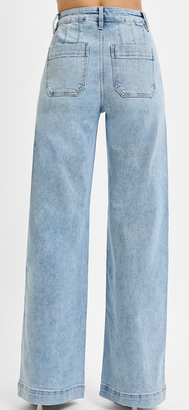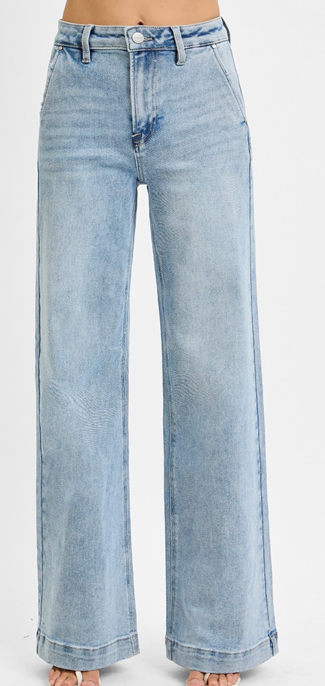Introducing the Risen Harper Denim, featuring a high rise and wide leg for a flattering fit and slanted pockets for a touch of style. Made with a blend of cotton, polyester, viscose, and spandex, these jeans offer comfort and stretch for all-day wear. (We promise, you'll never want to take them off!)