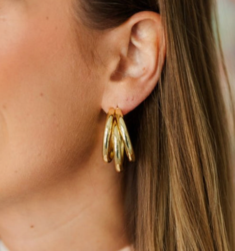 Our unique triple style gold hoops are the perfect addition to any wardrobe.