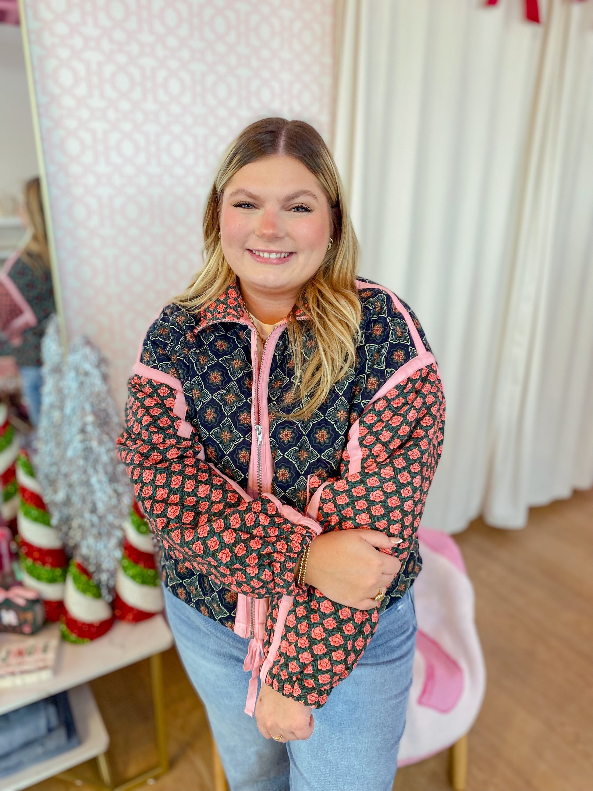 The Set Me Free Jacket combines a rose garden floral print with bright color blocks and fun patterns. Its pink-taped padding keeps you warm and adds a playful touch to your look. Cozy and colorful, it’s perfect for chilly days!