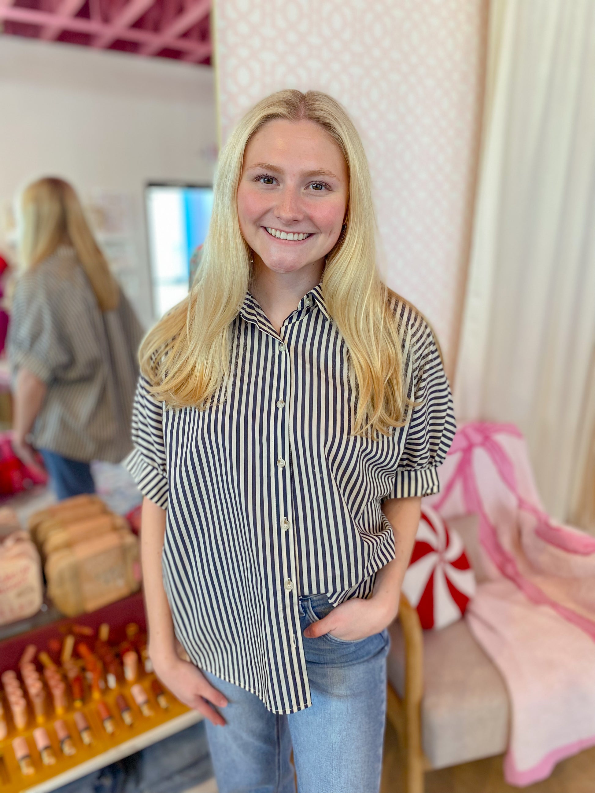 Embrace cozy vibes with the Sunday Comfort oversized shirt in ash brown stripes. Its relaxed fit and soft fabric make it perfect for lounging or casual outings, while the button-down style adds a touch of effortless cool. Whether paired with jeans or leggings, this shirt invites you to slow down and enjoy the simple pleasures of the weekend in style.