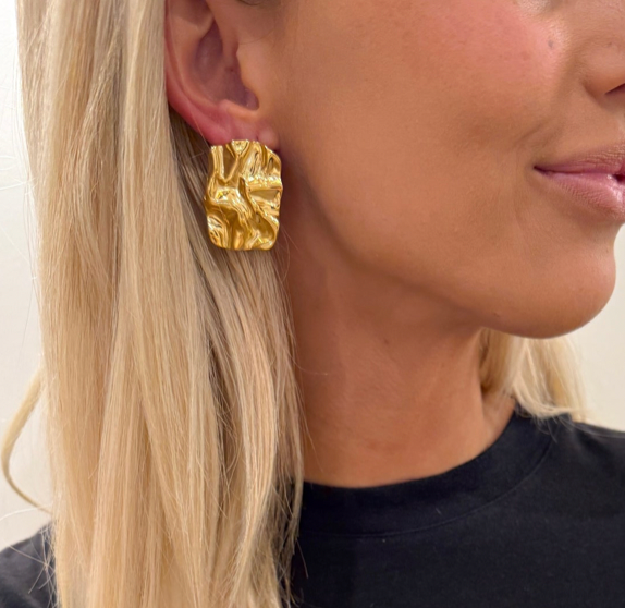 These gold wavy earrings are perfect for any occasion and are WATER RESISTANT, providing long-lasting beauty and fun. Get ready to make a splash with these quirky, stylish earrings.