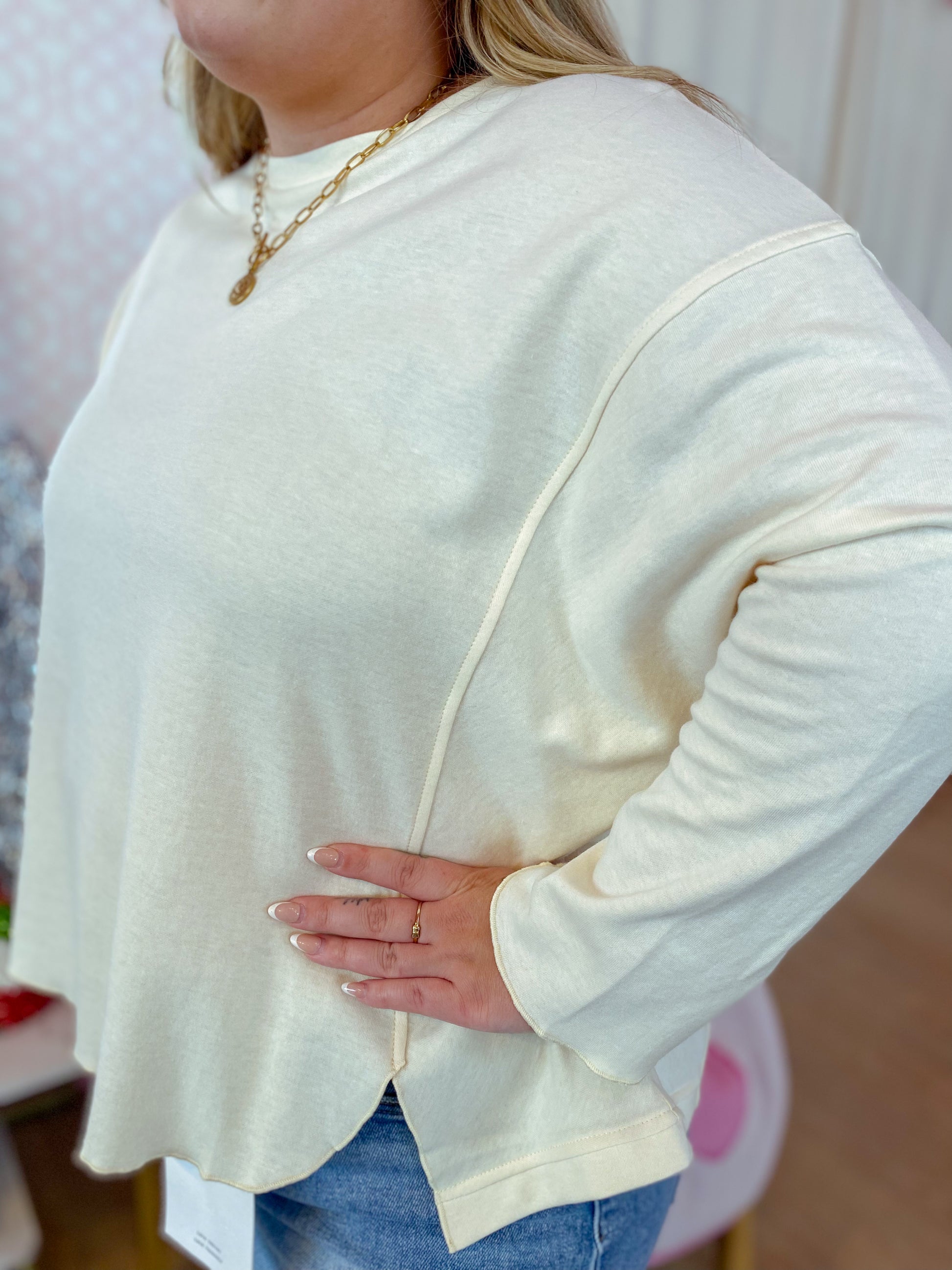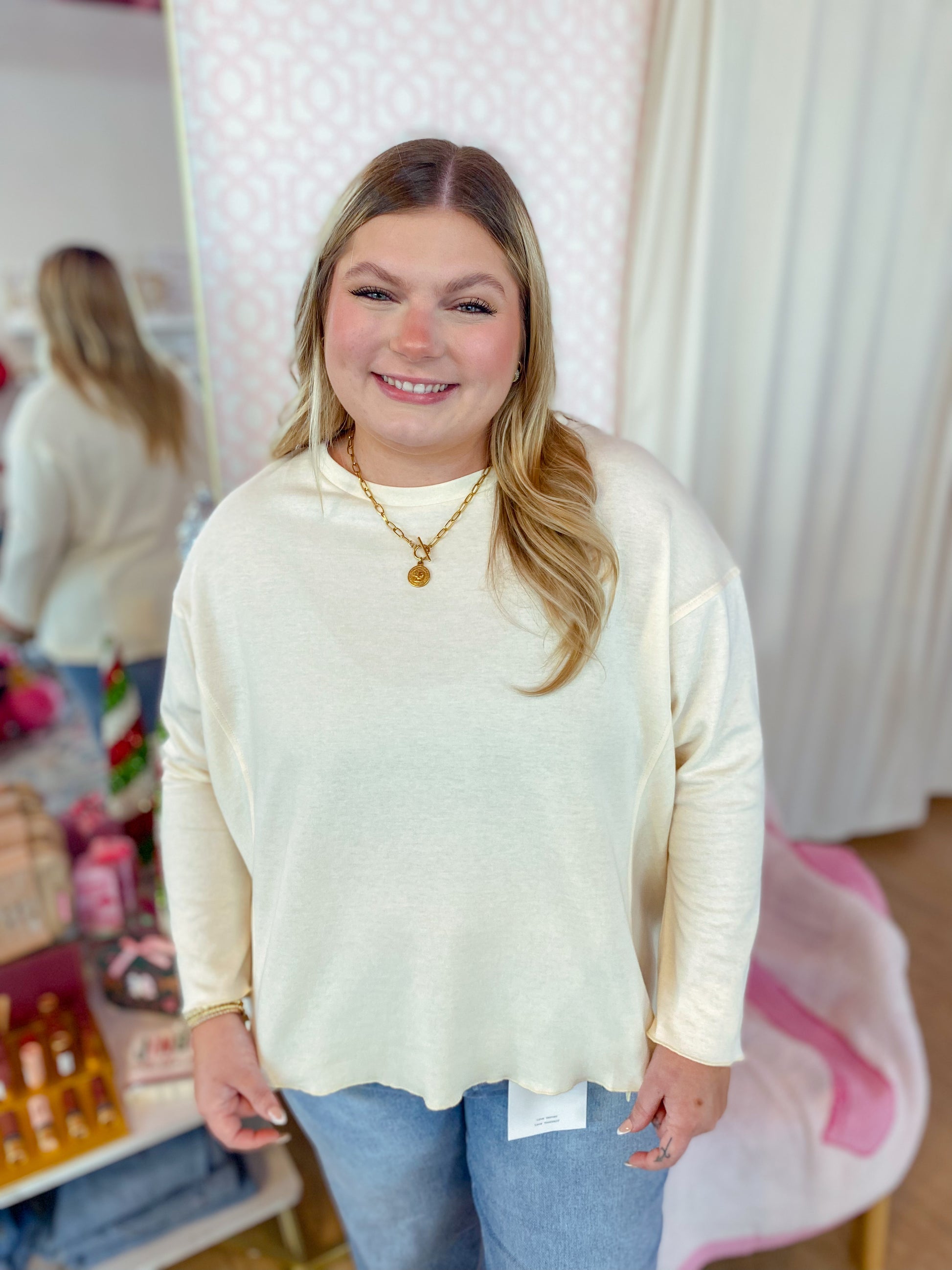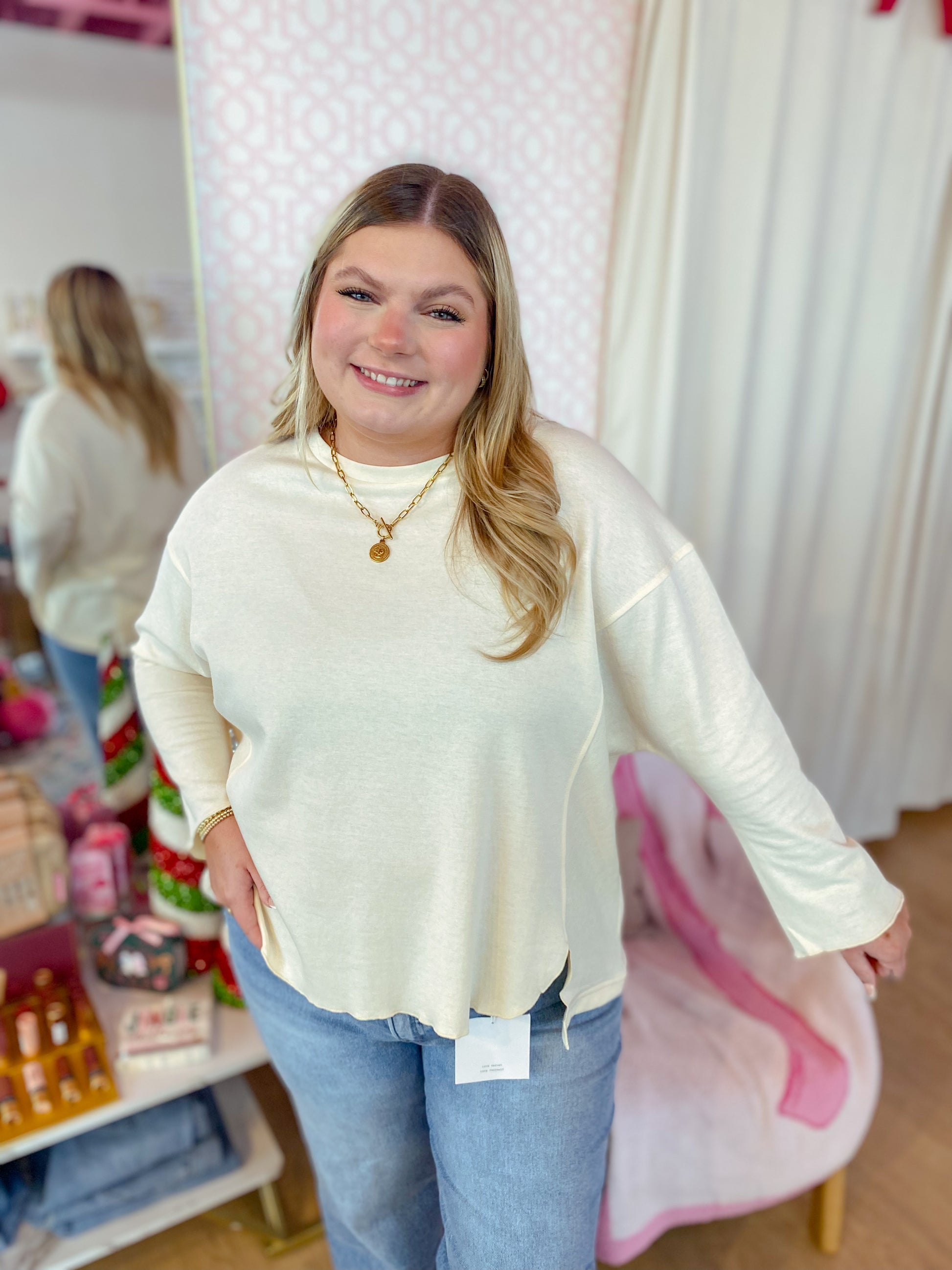Elevate your casual style with the "Told You So" top—a cream-colored, loose-fit long sleeve designed with playful slit details for a flirty touch. Its relaxed silhouette keeps you comfy all day while adding subtle edge to any outfit. Perfect for those who like to keep it breezy and chic!
