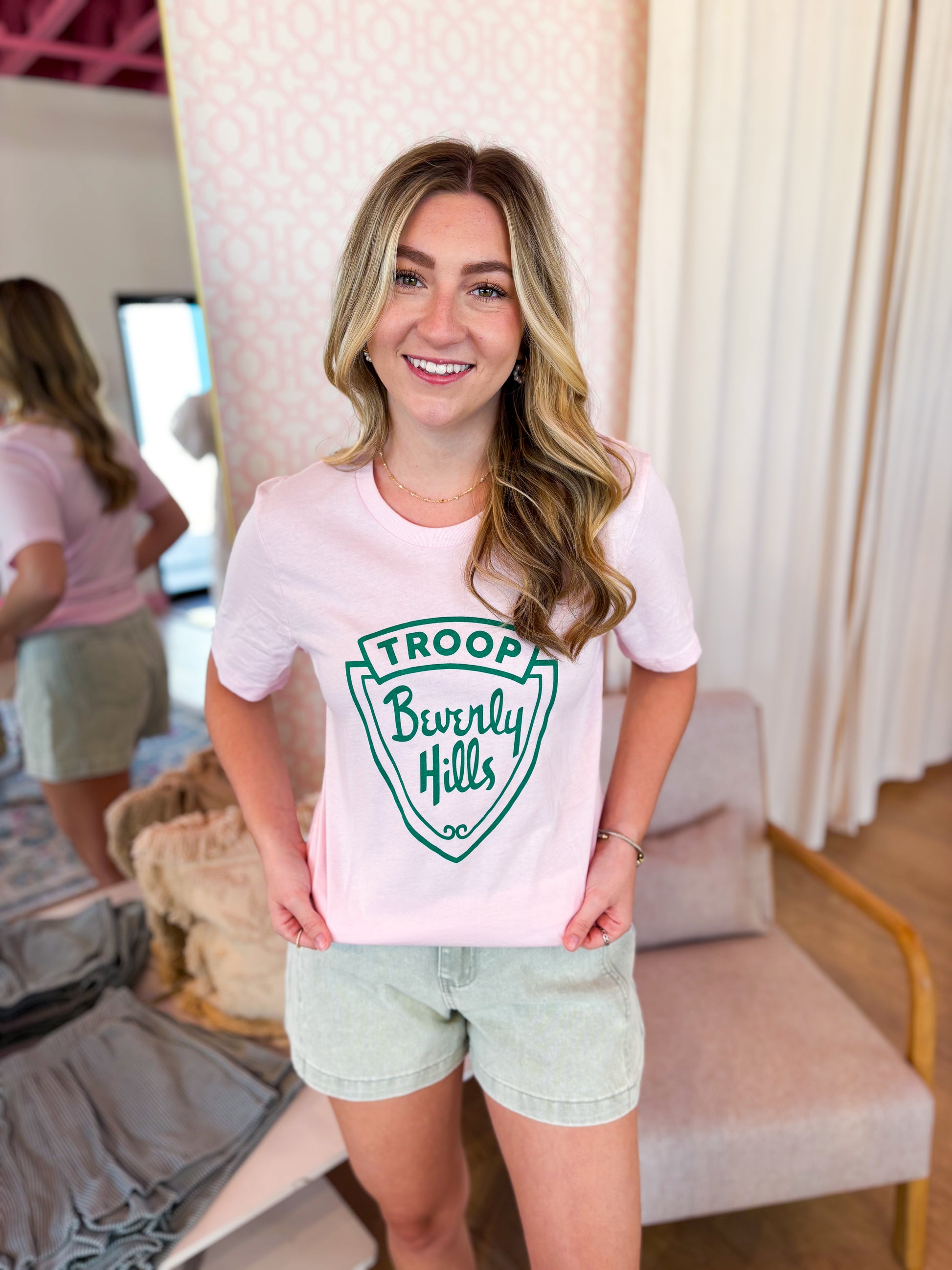 Y'all asked for it so we brought it! How stinking cute is this Troop Beverly Hills tee?! So precious. Pair this with leggings and sneakers or denim shorts, sandals and cute jewelry! This is a unisex fit with a crew neckline and short sleeves!