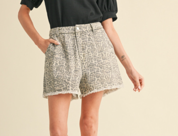 The Wild About You Shorts are fun leopard denim with a front jeans closure, belt loops, and a stretchy back waist. They have side and back pockets plus a frayed hemline. Lightweight and non-sheer, they’re perfect for a cool, wild summer look!